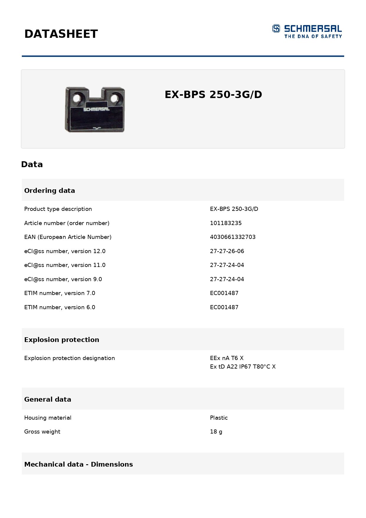 Use with: EX-BNS 250 safety sensors